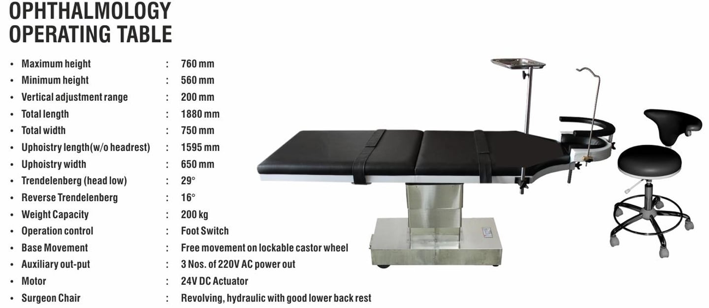 We provide ophthalmology, gynecology, autoclave sterilizers, and orthopedic units.